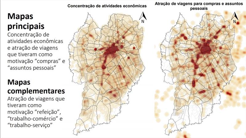 “Efetuamos um filtro das atividades típicas de centralidades e também consideramos os destinos das viagens que tinham como motivo ‘compras’ ou ‘assuntos pessoais’. Depois excluímos algumas condições, como atividades que estão concentradas em espaços fechados (shoppings, hipermercados e comércio atacadista) e vias que, apesar da disposição de um grande número de estabelecimentos, apresentam um maior afastamento entre as atividades, não existindo um ponto específico de alta concentração”, observou.