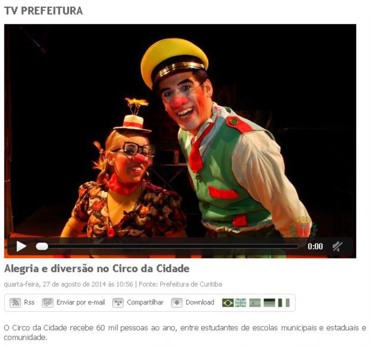 O Circo da Cidade “Zé Priguiça”, unidade da Fundação Cultural de Curitiba, instalado no Alto Boqueirão, oferece apresentações gratuitas do espetáculo “Circotidiano – A Vida Virou Circo”, a cargo da Cia. dos Palhaços. As sessões acontecem às 15 horas dos dias 16 e 30 de agosto (sábados), proporcionando diversão às comunidades, por meio da arte circense.
