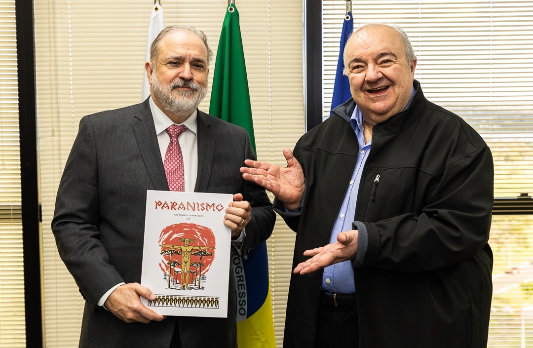 O prefeito Rafael Greca se reuniu, na tarde desta terça-feira (30/5), em Brasília, com o procurador-geral da República, Antônio Augusto Brandão de Aras. Durante o encontro, Greca presentou Aras com um exemplar do livro “Paranismo”, escrito por José Roberto Teixeira Leite, crítico de arte e o maior especialista no movimento intelectual e artístico da década de 1920 que exaltava a identidade paranaense.