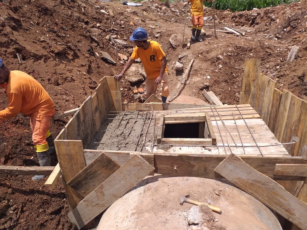 Foram realizados 7.787 metros de limpeza e desobstrução de galerias realizada a limpeza e desobstrução de 889 unidades de caixas de captação.