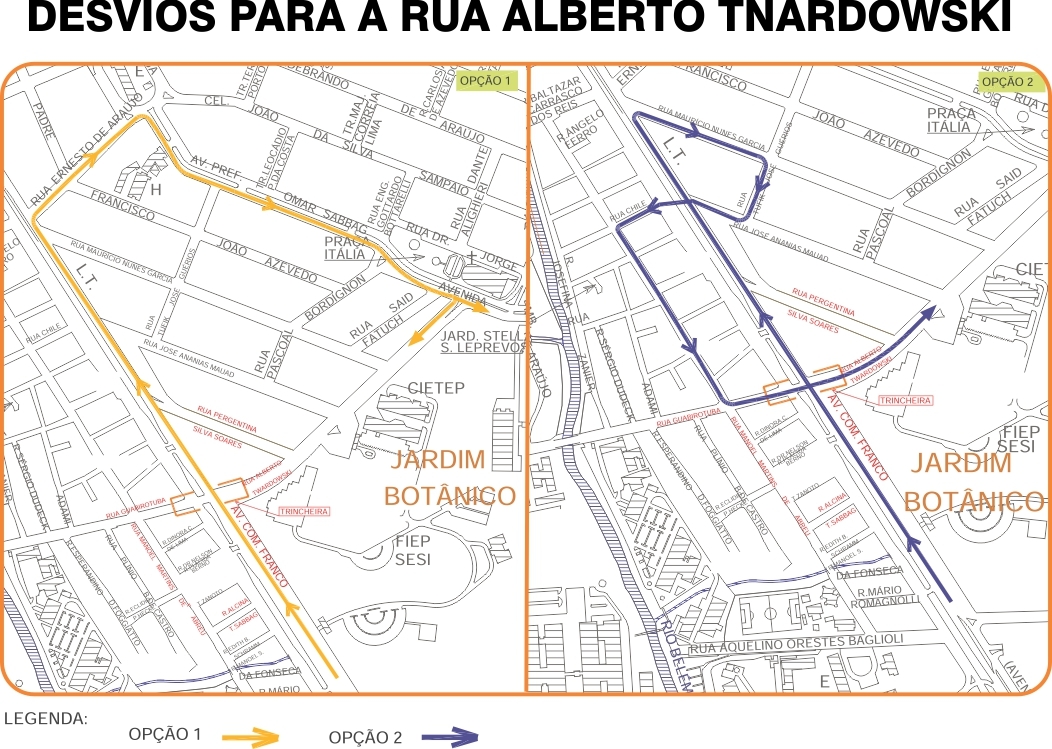 Enquanto a nova ligação não é liberada, quem segue pela Avenida das Torres, sentido Centro, poderá chegar ao bairro Jardim Botânico de duas formas: entrando no acesso à trincheira da Rua Chile, passando pela trincheira é possível virar a primeira à esquerda (Rua Manoel Martins de Abreu), ir até a Rua Guabirotuba e seguir pela trincheira que leva à Rua Alberto Twardowski; ou entrando na Rua Ernesto de Araújo e seguir até a Avenida Prefeito Omar Sabbag, à direita, no sentido Jardim Botânico da via. Veja mapa Aqui